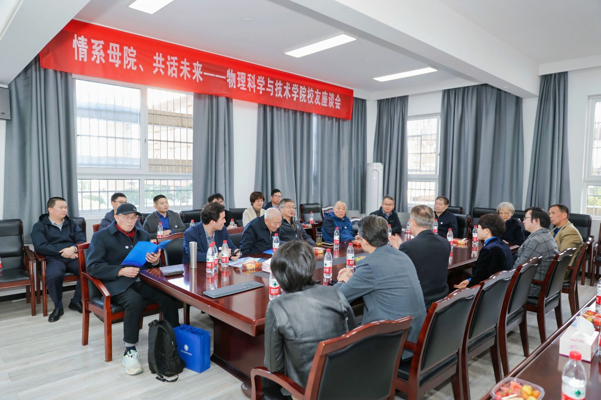 与此同时,“情系母院、共话未来”学院校友座谈会在龙赛理科楼北楼228“党员之家”举行,学院党政领导、各系所负责人、老领导、教师代表、校友会理事代表共忆昔日在校岁月,共话学院未来发展。