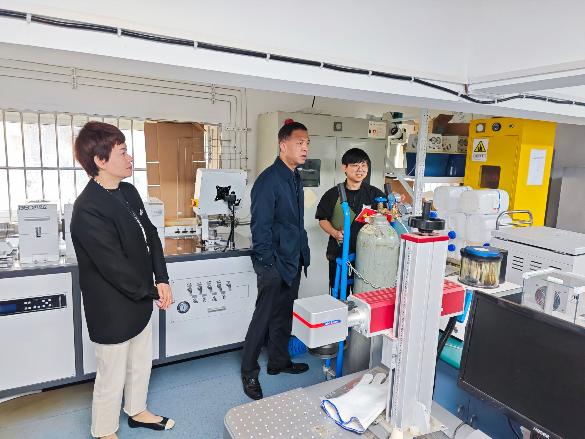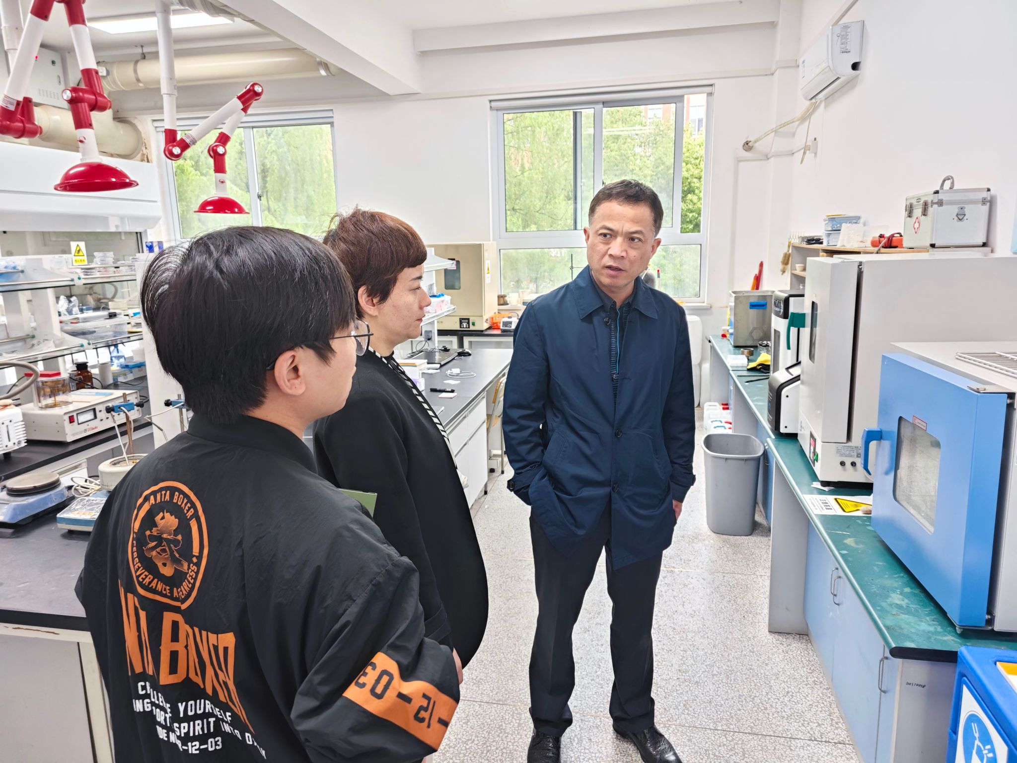 检查过程中,朱书记嘱咐实验室师生务必做好“五一”假期期间的安全管理和安全自查工作,在放假期间要特别注意关闭水、电、气、门窗,同时强调了实验室安全管理的重要性,不断提高师生的安全意识和应急处理能力。