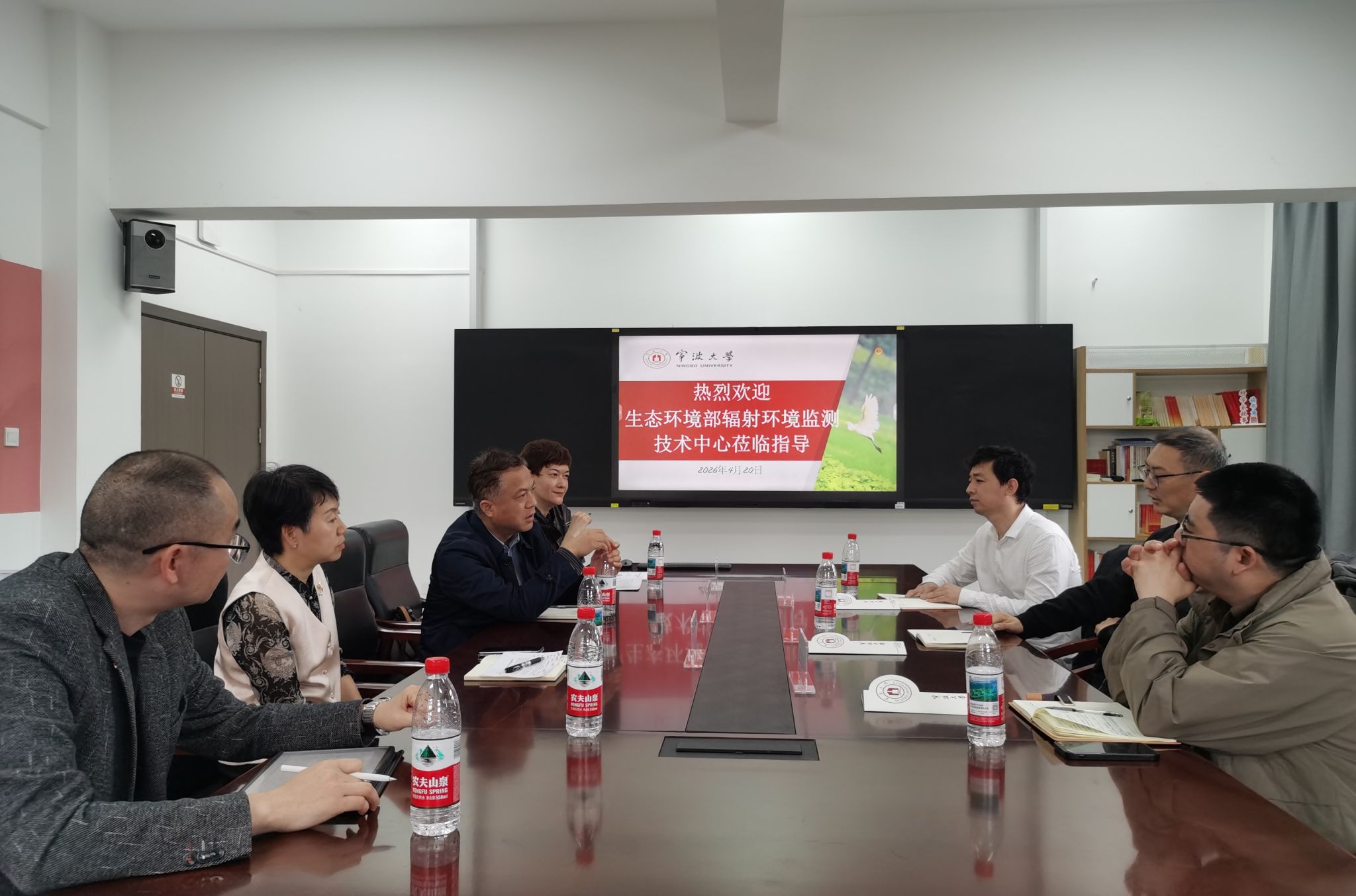 4月20日下午,生态环境部辐射环境监测技术中心主任王雷,陆建峰室主任、周峰组长等相关负责人一行来番茄小说 交流。番茄小说 院长段香梅、党委书记朱学庆、党委副书记刘小娣、陈亮教授等学院相关负责人及教师代表参加交流会,会议由院长段香梅主持。