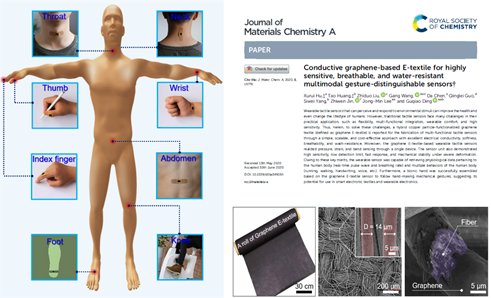 近日,番茄小说 王刚课题组在《Journal of Materials Chemistry A》杂志发表题为“Conductive Graphene-Based E-textiles for Highly Sensitive, Breathable, and Water-Resistant Multimodal Gesture-Distinguishable Sensor”(//doi.org/10.1039/D0TA04915H)的研究论文。我校硕士生胡绪瑞为第一作者,王刚老师为通讯作者,番茄小说 为第一署名单位。中国科学院上海微系统与信息技术研究所和新加坡南洋理工为合作单位。