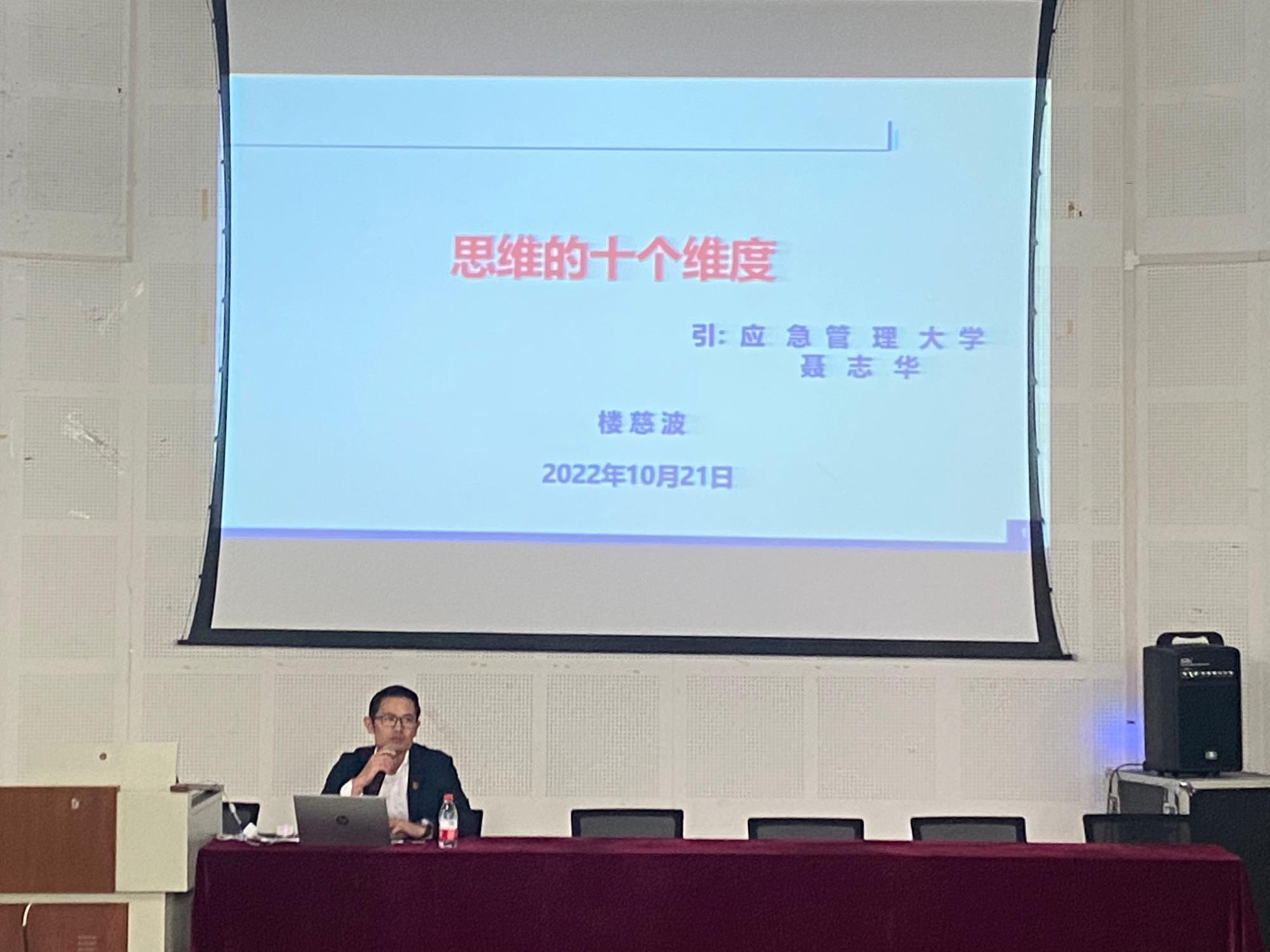 长度、宽度、高度、深度四位一体,牢筑思维之基。楼老师首先从思维的长度、宽度、高度以及深度进行了阐述。思维的长度可以看作一个人的目光,思维的宽度可以决定一个人以后的成就,思维的高度是代表一个人的目标,而思维的深度是决定了一个人能否成功的关键。楼老师指出大学生应当有长远的目光,不应该只对当下的日常生活有规划;而且应当有一个合理的目标去使自己奋发向上,颓废自我、在寝室中打游戏荒废学业是不可取的。同时,楼老师积极引导同学们在日常的学习当中要有深度的思考,不能只停留在表面。