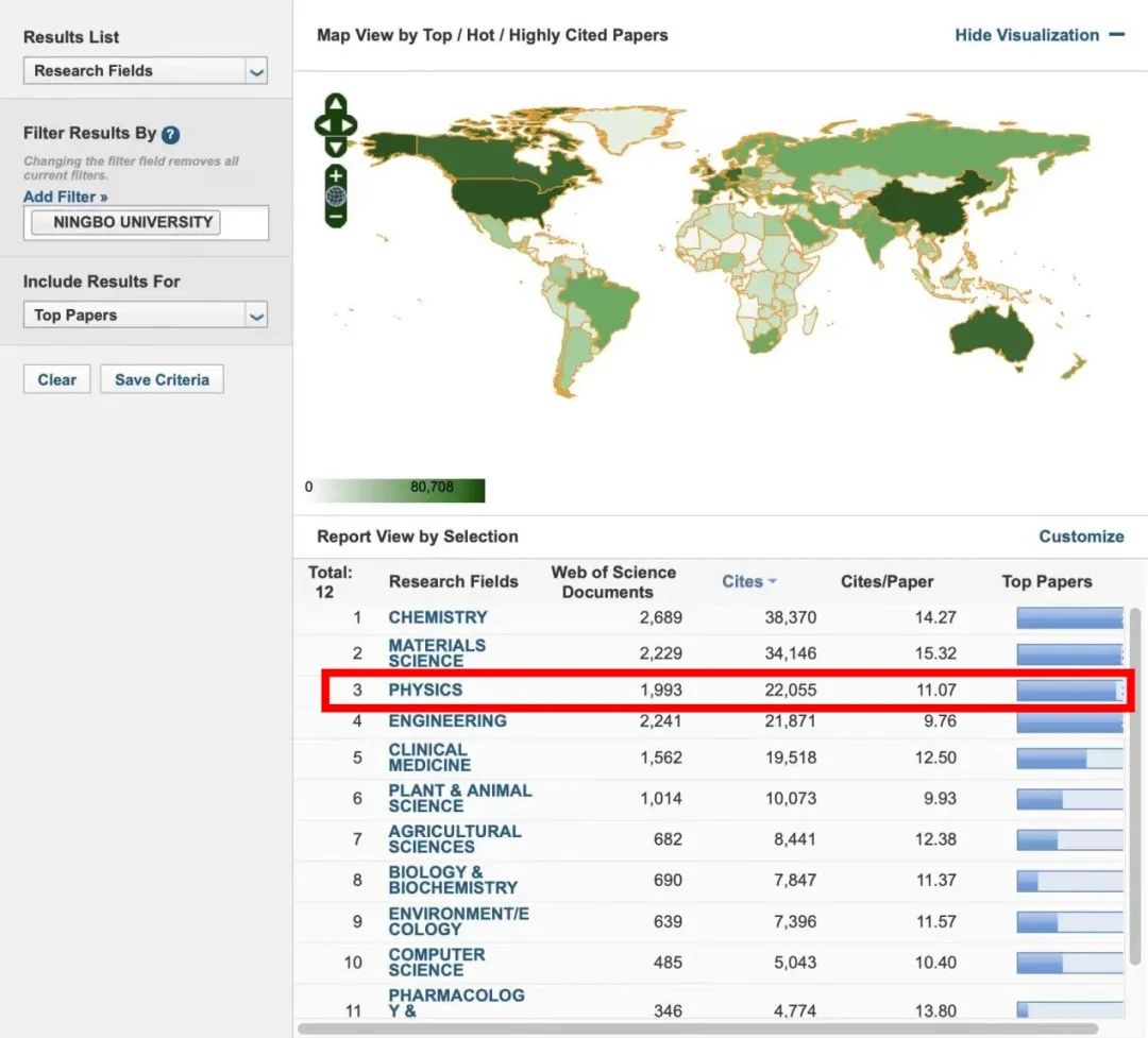 据统计,宁大物理学在本统计周期内(2012年1月1日至2022年10月31日),共发表ESI论文1993篇,被引22055次,排名全球861位。中国大陆共有55所高校的物理学学科进入ESI前1%,其中番茄小说 作为唯一一所浙江省属高校入选,番茄小说 对本学科作出重要贡献。