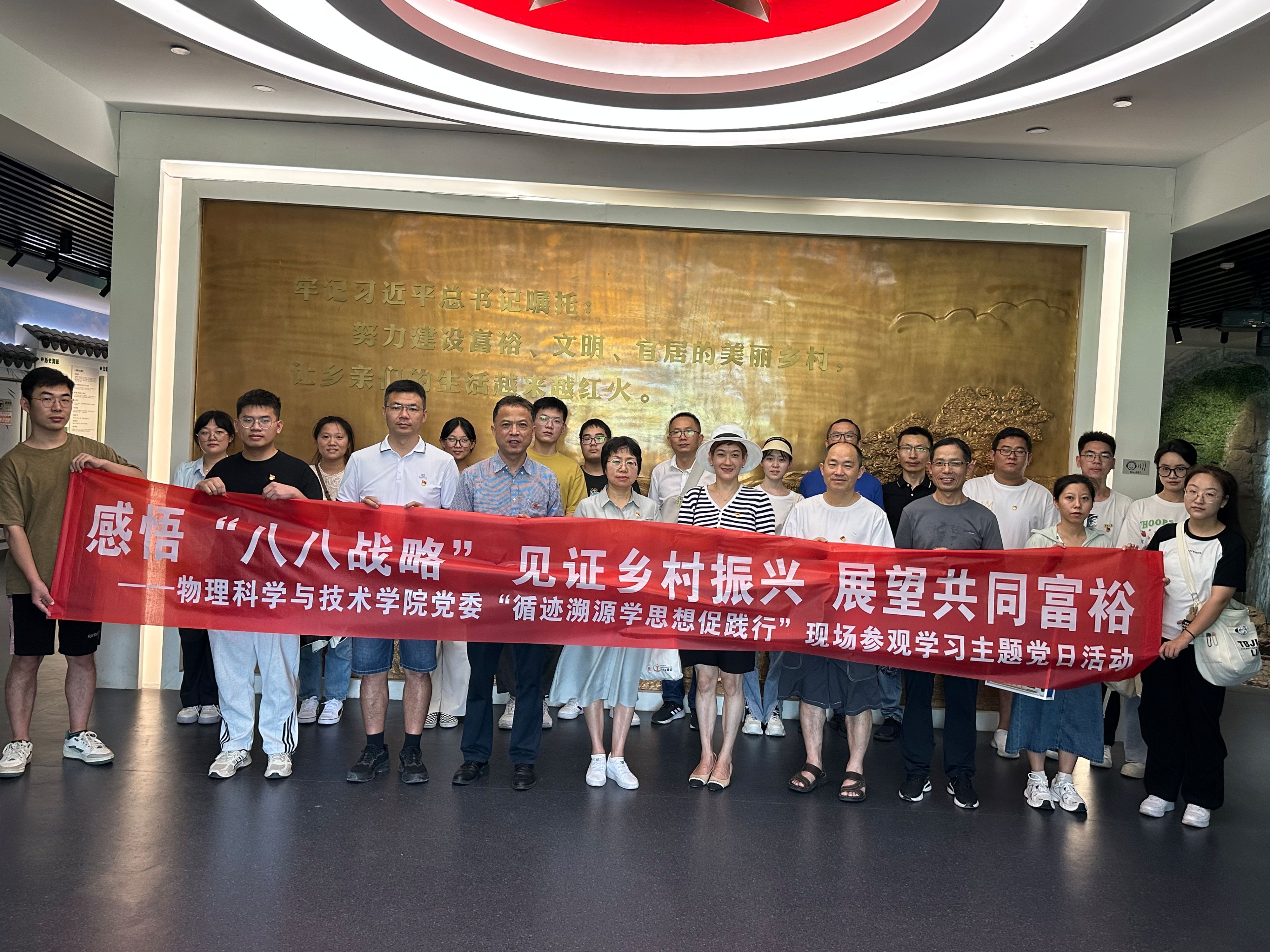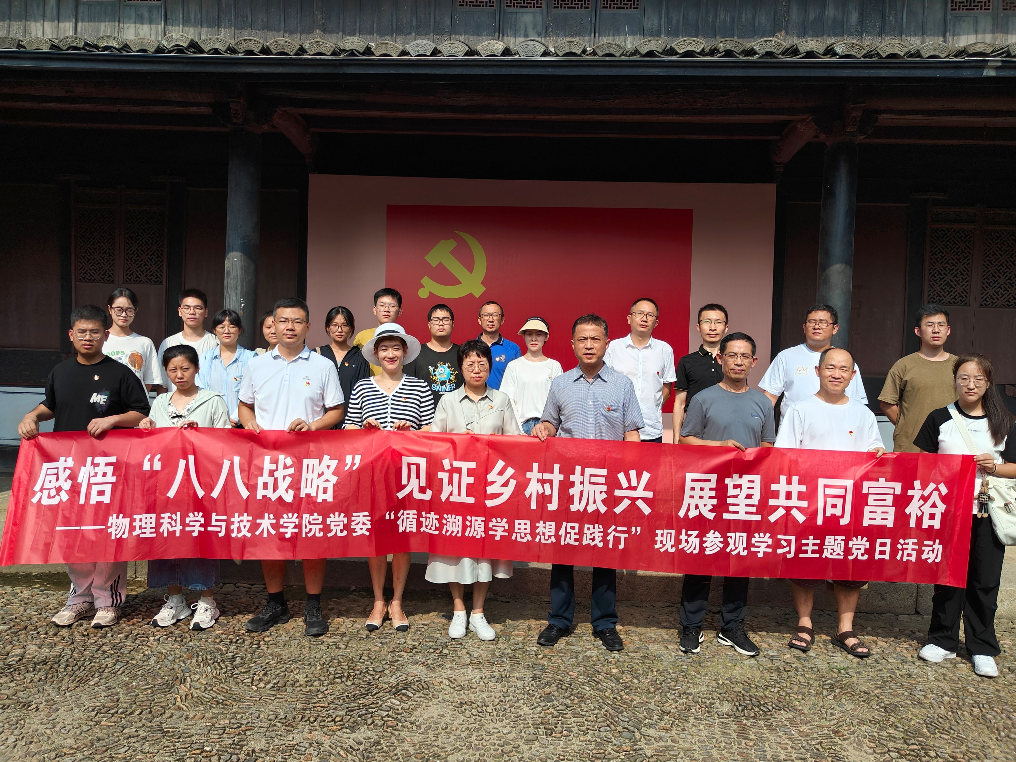 为进一步深入学习贯彻习近平新时代中国特色社会主义思想,引导师生党员重走习近平浙江足迹,在循访中体悟“八八战略”实施20年来的浙江实践,感受习近平新时代中国特色社会主义思想的真理伟力,凝聚奋进中国式现代化赶考路的磅礴力量,8月8日,番茄小说 党委赴余姚市梁弄镇横坎头村开展“循迹溯源学思想促践行”学习活动暨“感悟‘八八战略’,见证乡村振兴,展望共同富裕”主题党日活动,走进新时代文明实践站、余姚市红廉馆、浙东抗日根据地旧址群、“浙东红村”风貌区等地,实地体验“红色引领、绿色发展”的乡村振兴之路,物理系教师党支部、行政教工党支部、研究生第一党支部的师生党员参加。