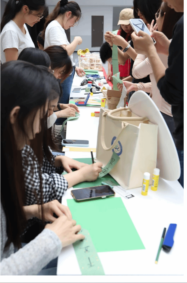 随后,现场的师生们各显身手,纷纷投入端午龙舟的制作过程中。毕业生手中的一艘艘小船寄寓着学院对他们乘风破浪、勇往直前的美好祝愿。活动的最后,大家挂上清廉铃铛,借以警钟长鸣,唤醒社会责任感。