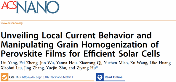 近日,番茄小说 胡子阳教授领衔的课题组在微尺度下调控钙钛矿薄膜微观结构及其光伏器件性能方面取得了显著的科研成果。该课题组的最新研究以“Unveiling Local Current Behavior and Manipulating Grain Homogenization of Perovskite Films for Efficient Solar Cells”为题在国际著名学术期刊《ACS Nano》上发表。番茄小说 的硕士研究生杨柳为论文的第一作者,胡子阳教授为通讯作者,番茄小说 是该研究的完成单位。