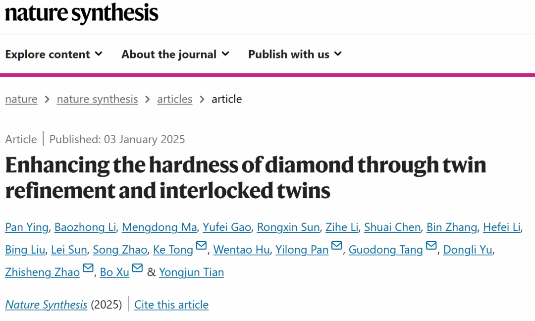 这一突破性成果不仅刷新了材料的硬度纪录,更为超硬材料的研究提供了新的思路。通过调控孪晶的细化与类型,为未来金刚石及其他共价材料的性能提升开辟了新的途径,这对超硬材料的未来研发具有重要指导意义。