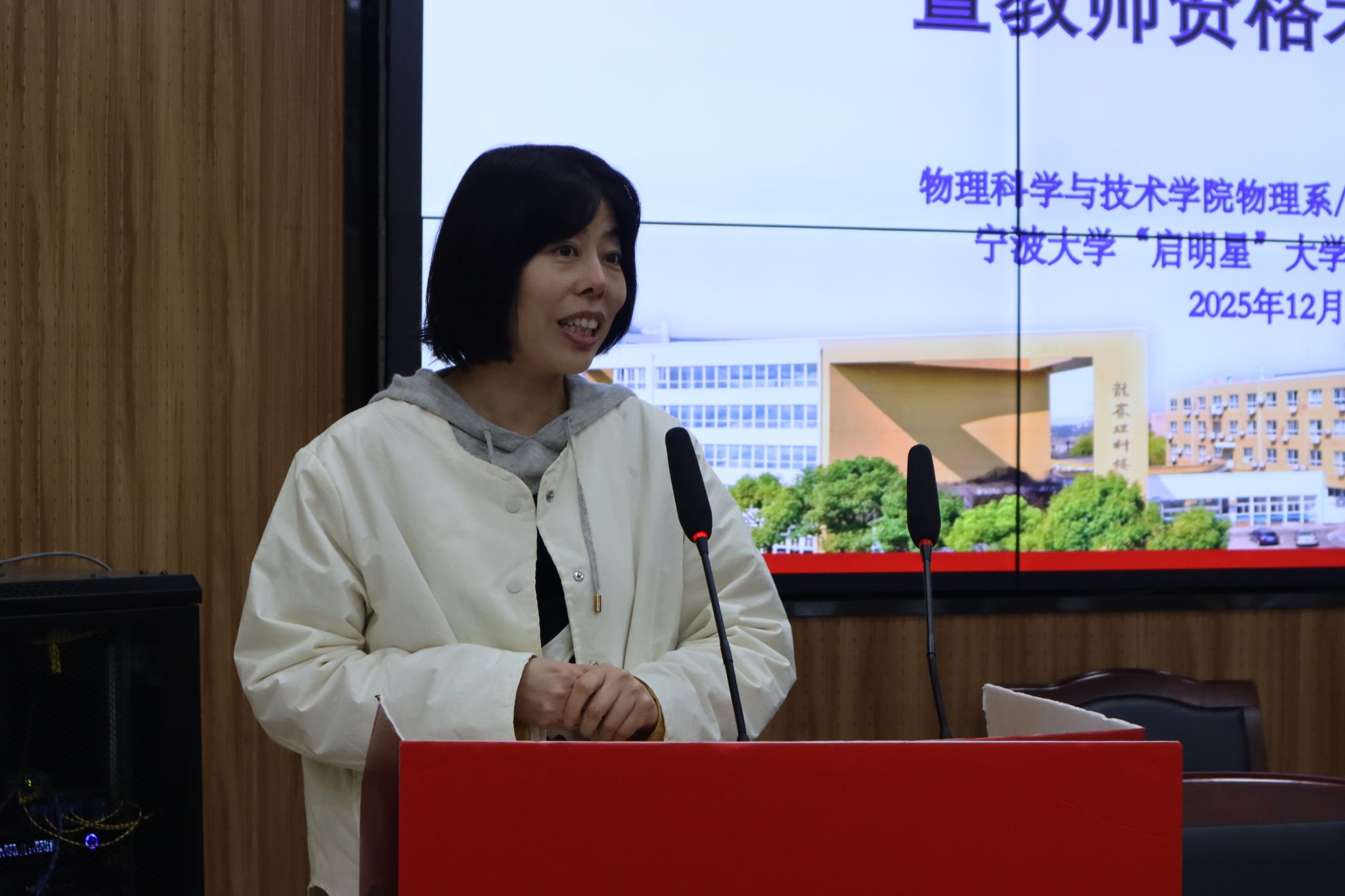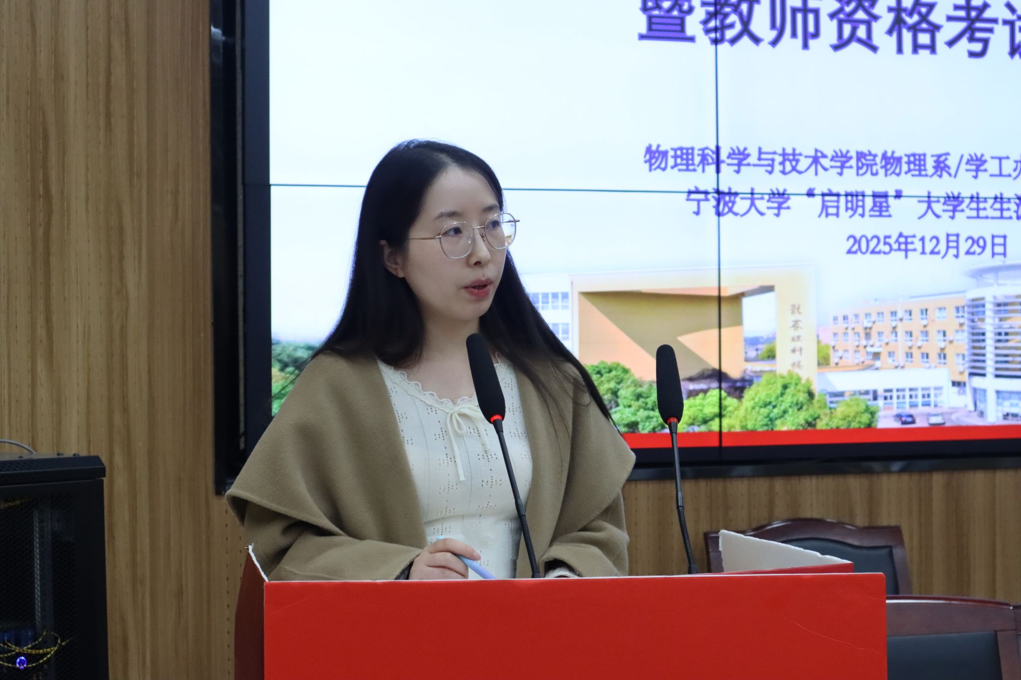 徐华老师首先就教师资格考试进行了专业动员与备考指导。她结合物理师范专业特点,深入剖析了教师资格证对职业发展的关键作用,分享了科学的备考策略与资源获取途径,鼓励同学们坚定从教信念,扎实准备,成就未来。