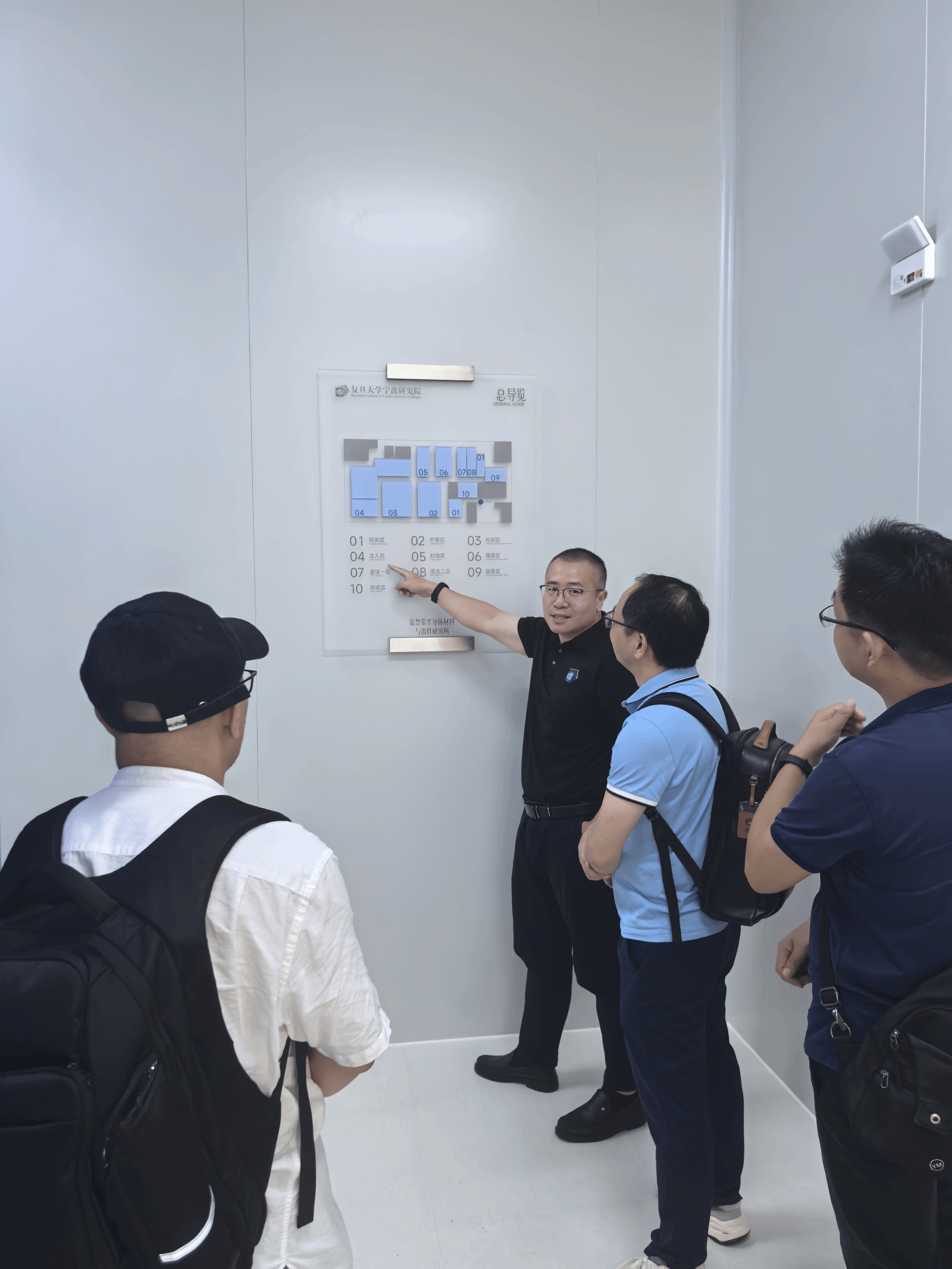 随后,学院一行前往复旦大学(宁波)研究院。调研团队重点考察了研究院的宽禁带半导体材料与器件研究所以及半导体器件制备工艺中心,通过实地参观与陈东坡所长的讲解,全面了解研究院在半导体器件设计、制备工艺等领域的前沿技术成果与创新研发能力。参观结束后,双方召开交流座谈会。复旦大学(宁波)研究院常务副院长崔峻对学院调研组的到访表示热烈欢迎,并系统介绍了研究院的发展历程、核心优势科研平台以及未来战略布局。胡子阳副院长则从学院人才培养体系、学科建设成果、校企合作经验,以及学院在半导体器件领域的研究方向等方面进行了详细阐述。会上,双方聚焦半导体行业发展动态、集成电路领域技术人才需求趋势、学生实习实践基地共建、前沿科学技术联合研发需求等核心议题,展开务实深入的交流,为后续合作搭建了清晰的沟通框架。