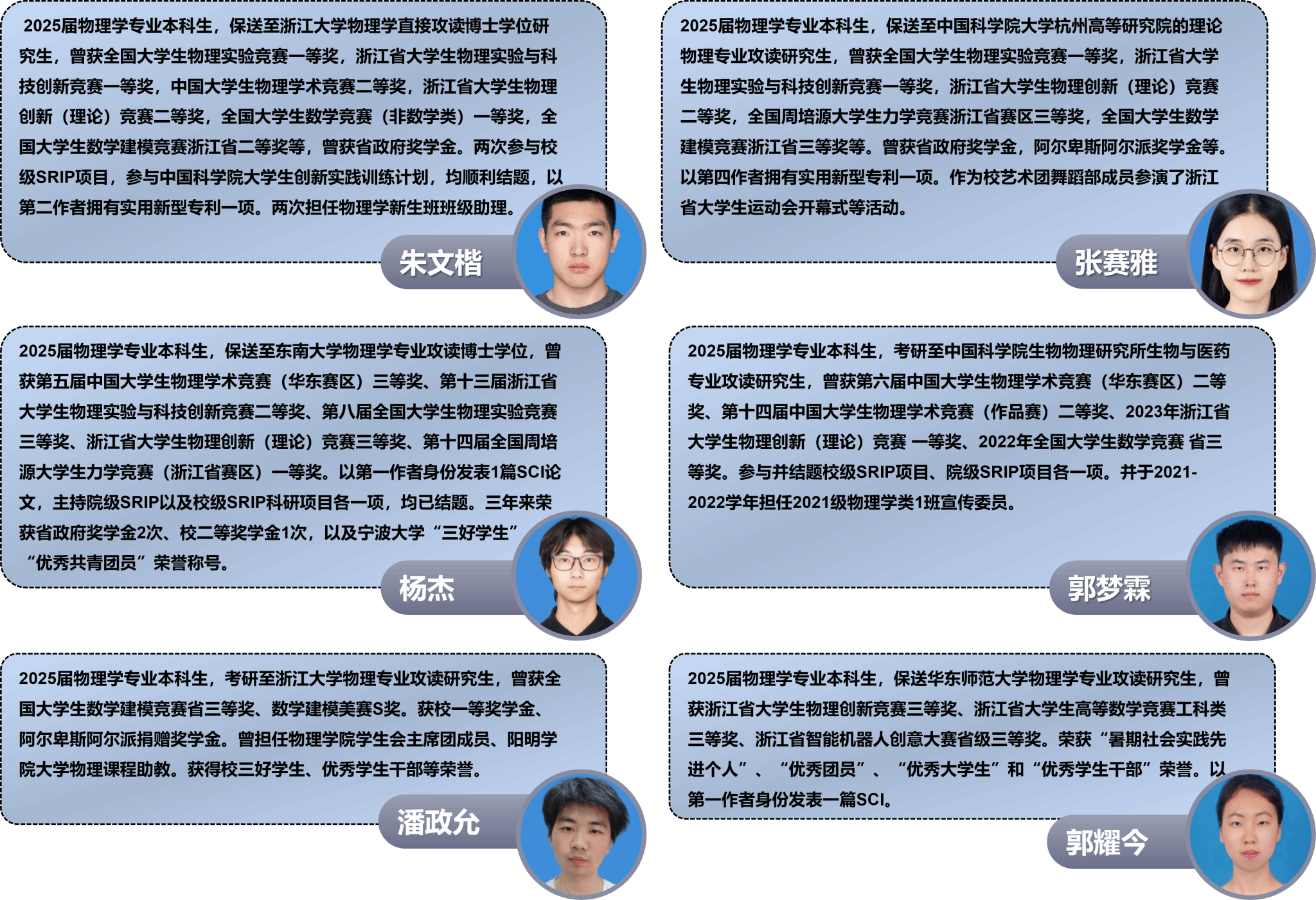 培养目标:物理学(拔尖人才创新班)全面贯彻党的教育方针,落实立德树人根本任务,立足浙江,辐射全国,培养未来的物理科学领域的拔尖创新型人才,具有较强的科研实操能力,适应未来科技发展的需求。