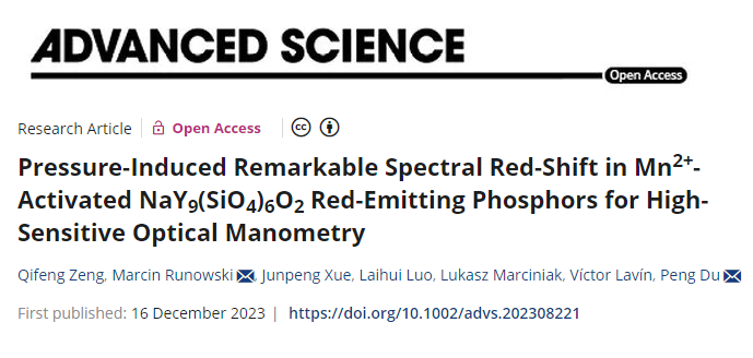 陶瓷发光实验室的研究论文——“Pressure-Induced Remarkable Spectral Red-Shift in Mn2+-Activated NaY9(SiO4)6O2 Red-Emitting Phosphors for High-Sensitive Optical Manometry”。番茄小说