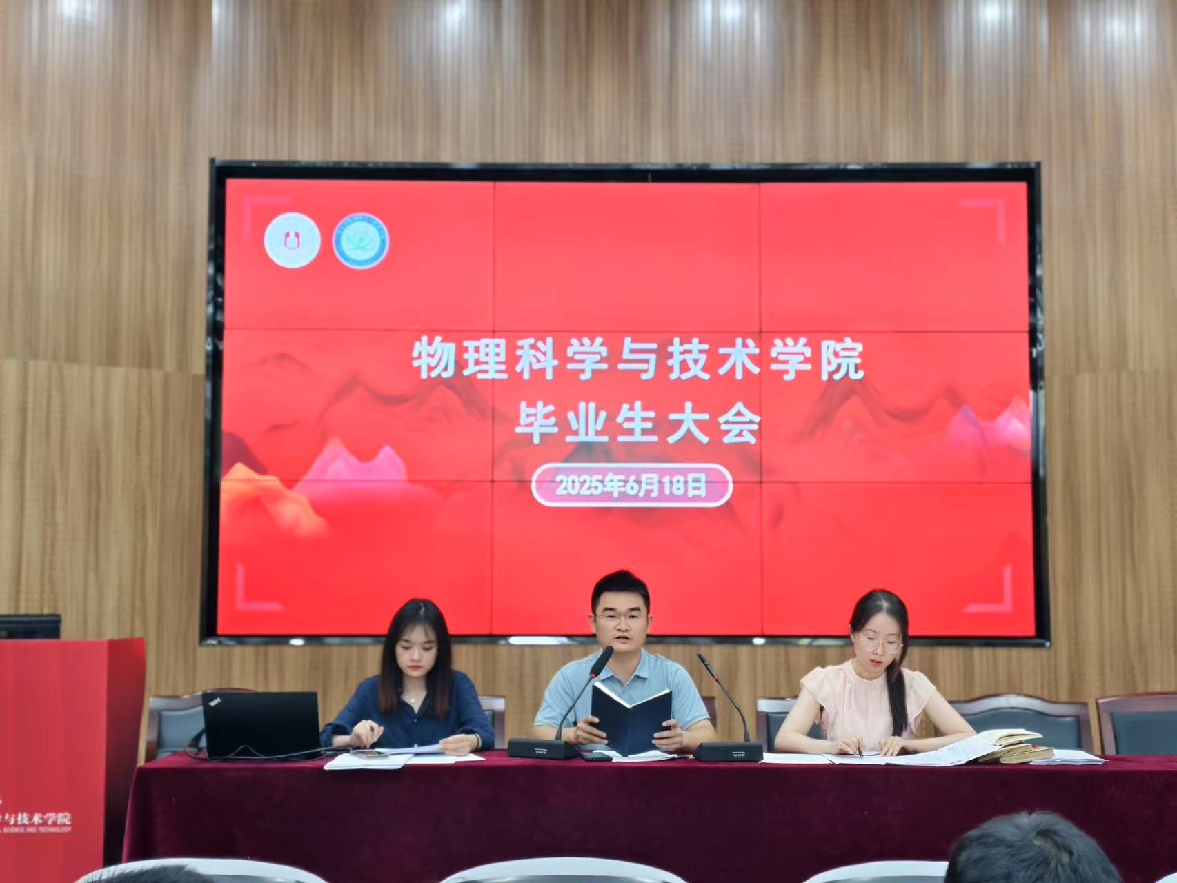 在龙赛理科楼北楼228“党员之家”举办2025年春季延长学业毕业生的毕业典礼。执行院长段香梅、副院长胡子阳、学院党委副书记刘小娣等党政领导、学院全体辅导员、行政教工党支部成员、5位本科毕业生与延长学业班的同学们齐聚一堂,共同见证这一庄严而温馨的时刻。 在庄严的国歌声后,负责本科教学的副院长胡子阳郑重宣读了毕业生名单。随后,执行院长段香梅等学院领导为每位毕业生拨正流苏、颁发证书,这个传统仪式的每个动作都饱含深意—...