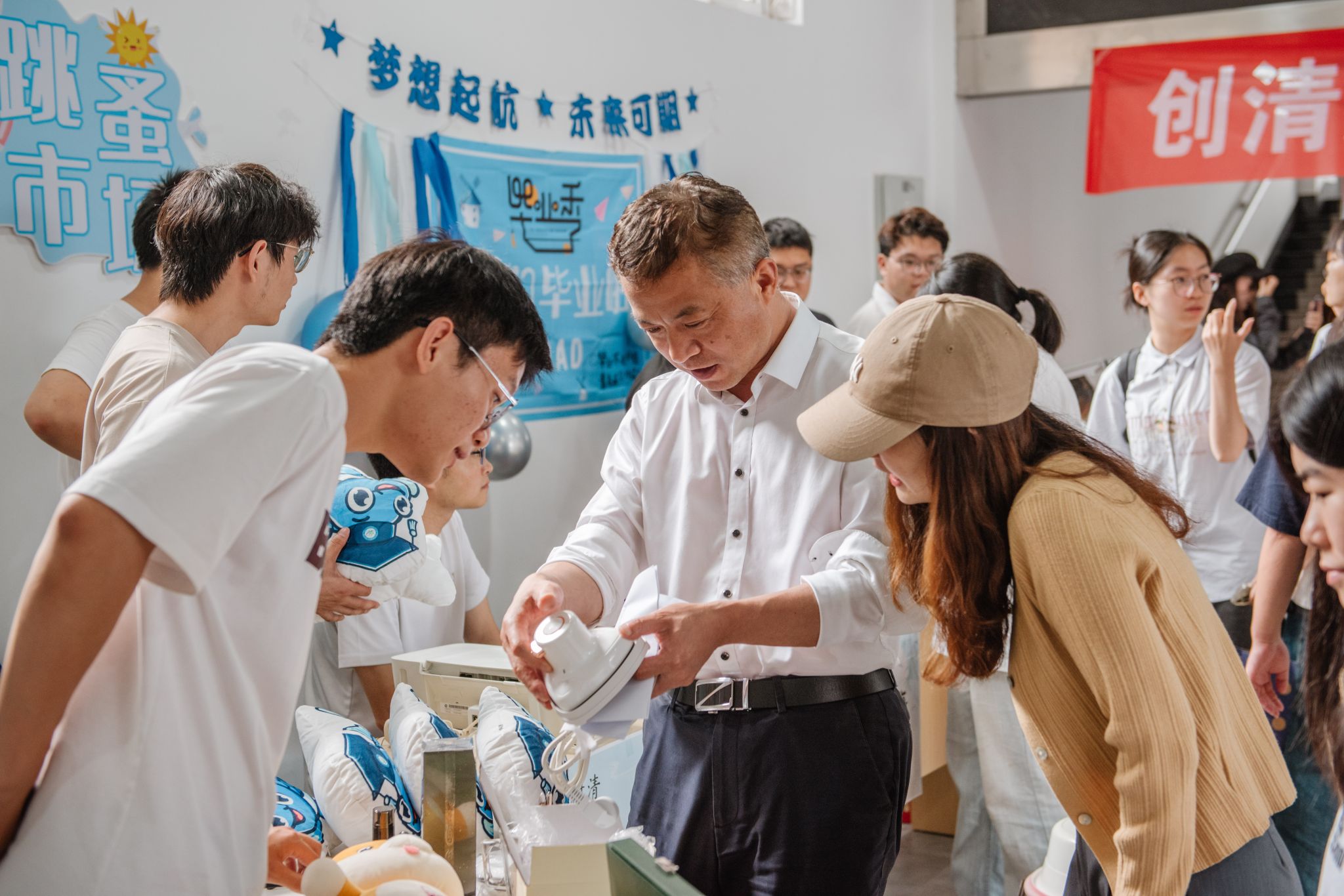 在龙赛理科楼一楼大厅举办首届“旧物不毕业,青春不散场”毕业季寝室跳蚤市场活动。活动从下午4点开始,毕业生们在学院一楼公共区域设置了各班摊位,出售包括书籍、文具、小饰品等各种闲置物品。这些二手物品种类丰富、价格实惠,吸引了众多在校师生前来选购。摊位前人头攒动、热闹非凡,大家在轻松愉快的氛围中交流与交易,场面十分温馨和谐。...
