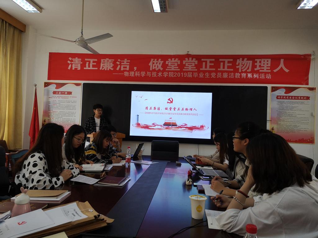 在党员之家116会议室举行“清正廉洁,做堂堂正正物理人”廉洁从业教育学习会。学院辅导员和全体毕业生党员参加会议。会上,同志们观看了廉洁教育警示片,视频中真实、典型的案例提醒了毕业生在踏上工作岗位后,面对诱惑应保持清醒的头脑,自觉抵制各种腐败现象的侵蚀...